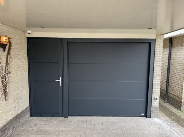 Dankzij het thermisch onderbroken aluminium profiel en een breed scala aan panelen uit het sectionaaldeuren programma, creëren wij een deur die niet alleen functioneel is, maar ook perfect aansluit bij uw wensen. U kunt kiezen uit 40 mm geïsoleerde staalsandwichpanelen, volledig glas of een combinatie van beide voor een unieke uitstraling.