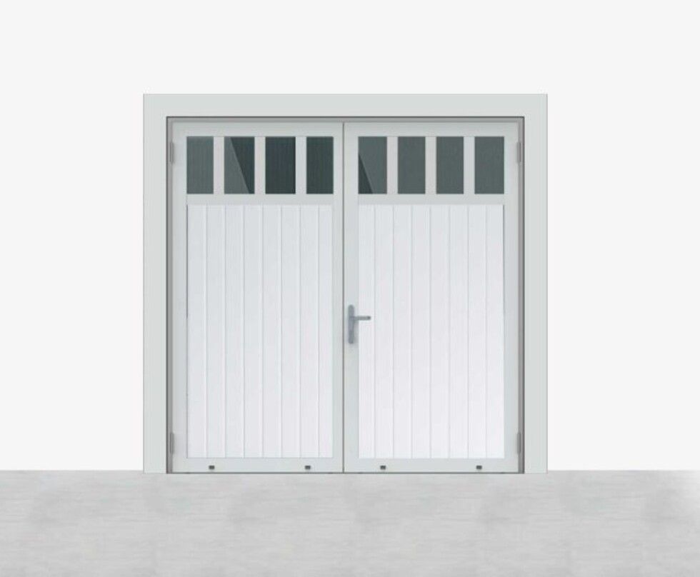 Deze uitvoering combineert glas met horizontale panelen. Het glas is op meerdere posities mogelijk en zorgt voor daglicht, terwijl de panelen privacy en isolatie bieden.