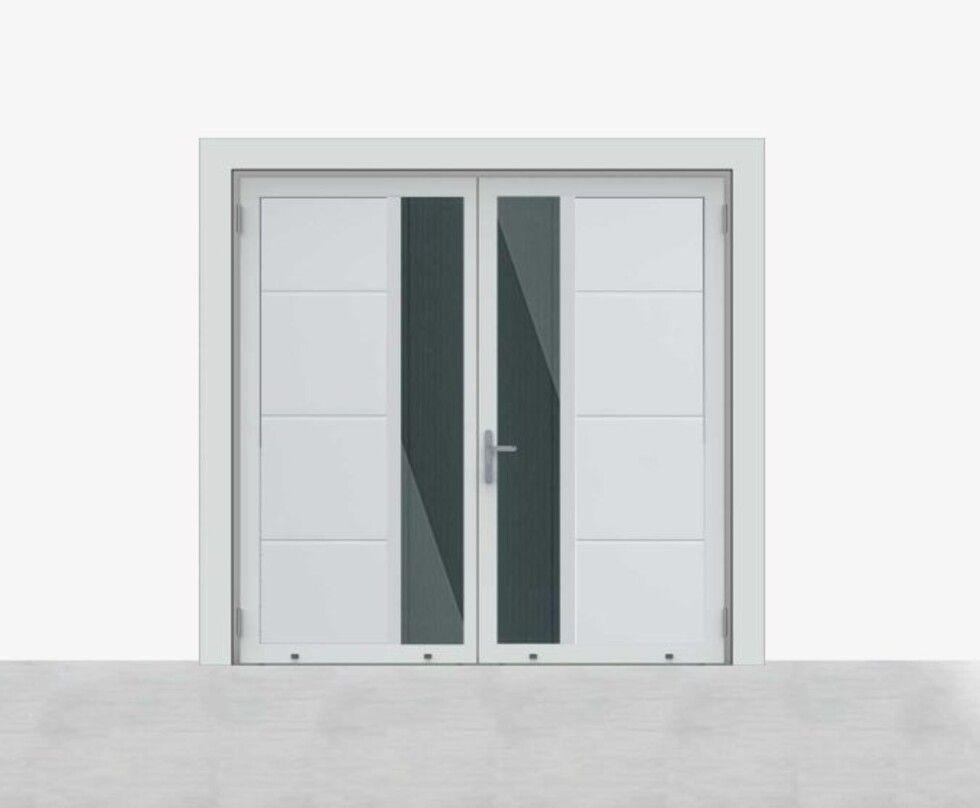 Deze uitvoering combineert glas met verticale panelen. Het glas kan op verschillende plekken worden toegepast en versterkt samen met de panelen de slanke, verticale uitstraling.