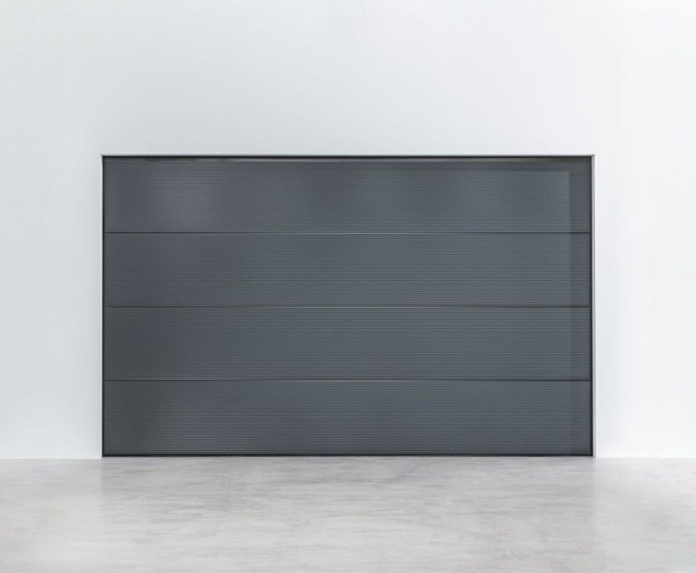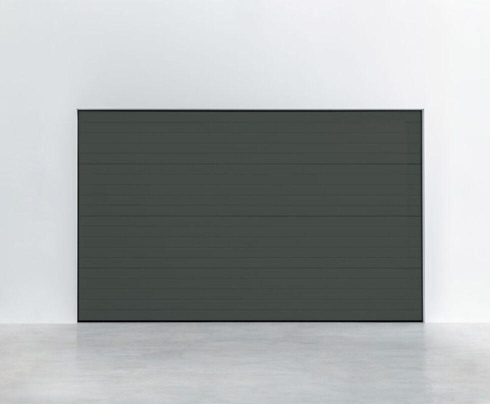 Stalen overheaddeur met fijn microprofiel voor een strak lijnenspel. Standaard leverbaar in RAL 7016, 9006, 9007 en 9016.